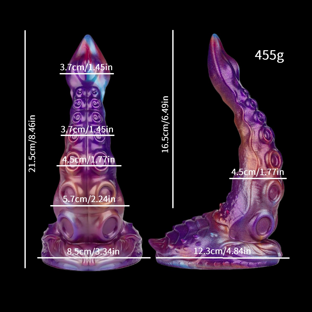 Iri’s overall shape is like a tentacle of an octopus from the demon realm, curved and full of tension. The colors are like the interweaving of magical lights and shadows, gradually changing from deep purple to gorgeous orange – red and then to mysterious blue, emitting a psychedelic and dangerous aura. The surface is covered with circular suckers and raised textures of different sizes, fine and realistic, as if it is a magical replica of a real octopus tentacle. Every detail contains the power of the demon realm.