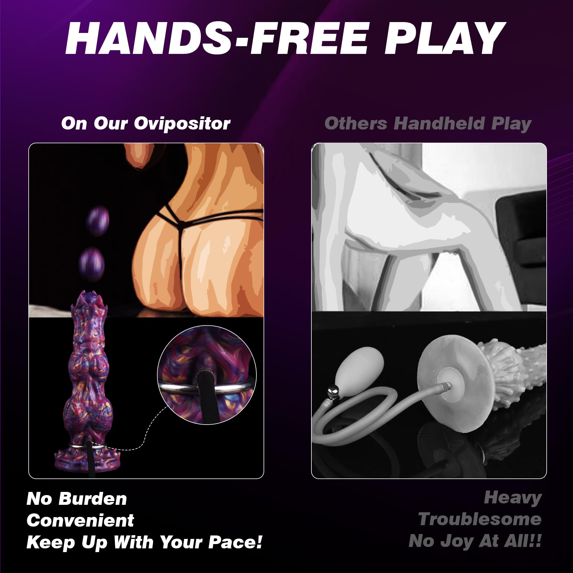 The integrated pump system is a total game-changer!The ability to customize tightness with the makes every experience perfect. The iridescent purple/pink silicone is stunning.